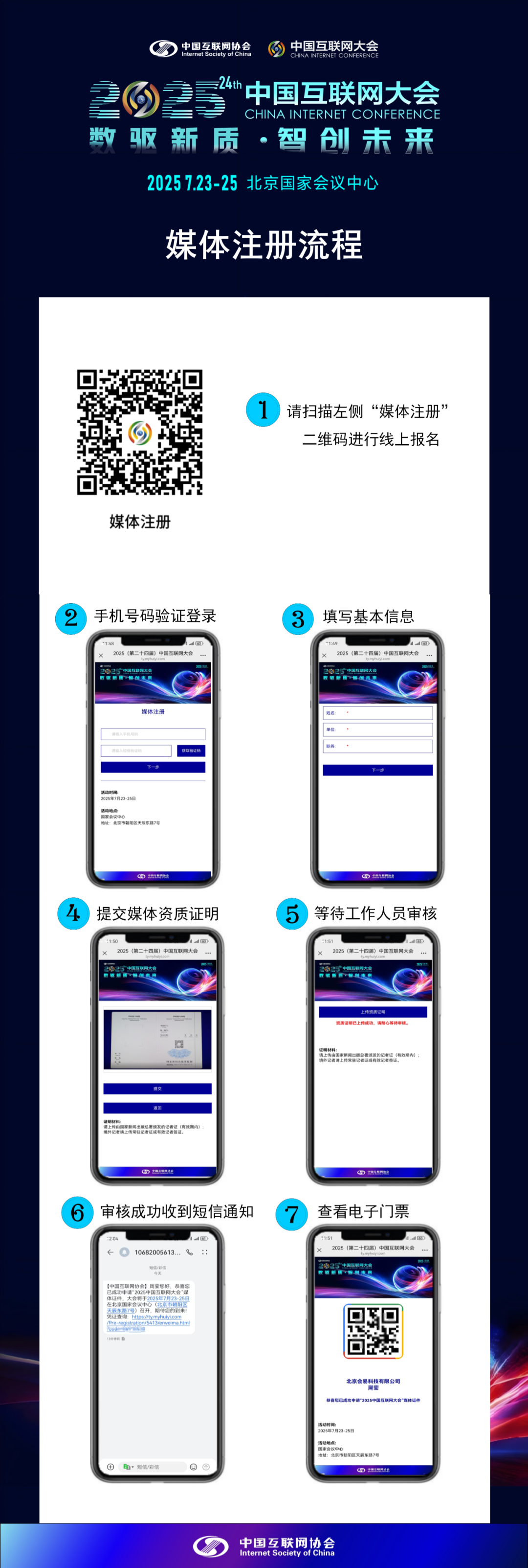 中国互联网协会将于7月23日—25日在北京国家会议中心举办2025(第二十四届)中国互联网大会。现于即日起至7月14日开启媒体报名通道,我们热情欢迎媒体朋友们前来,见证这场互联网行业盛会!